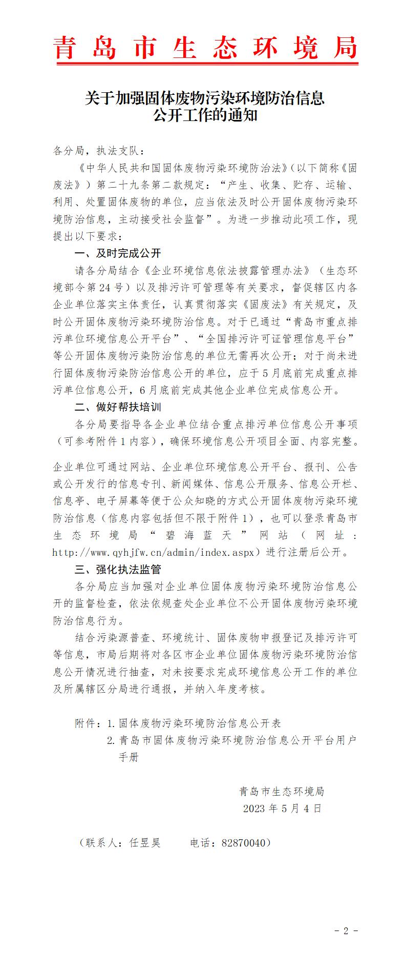 关于加强固体废物污染环境防治信息 公开工作的通知