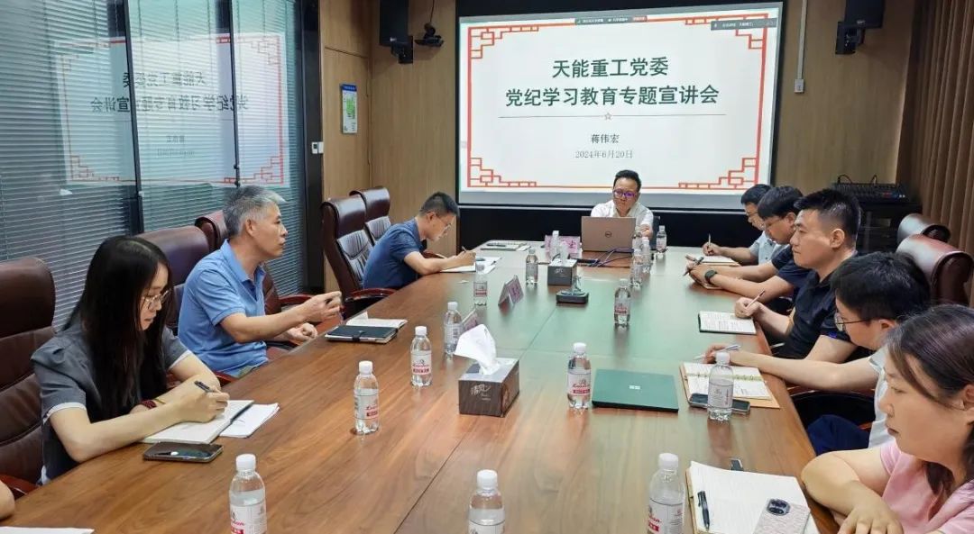 为深入推进党纪学习教育走深走实,进一步加强公司党员、管理人员的党纪意识,筑牢廉洁自律防线,6月20日上午,天能重工党委举办党纪学习教育专题宣讲会,董事长黄文峰出席并作重要讲话,党委书记蒋伟宏作专题宣讲,公司领导班子成员、中层管理人员及全体党员聆听宣讲。