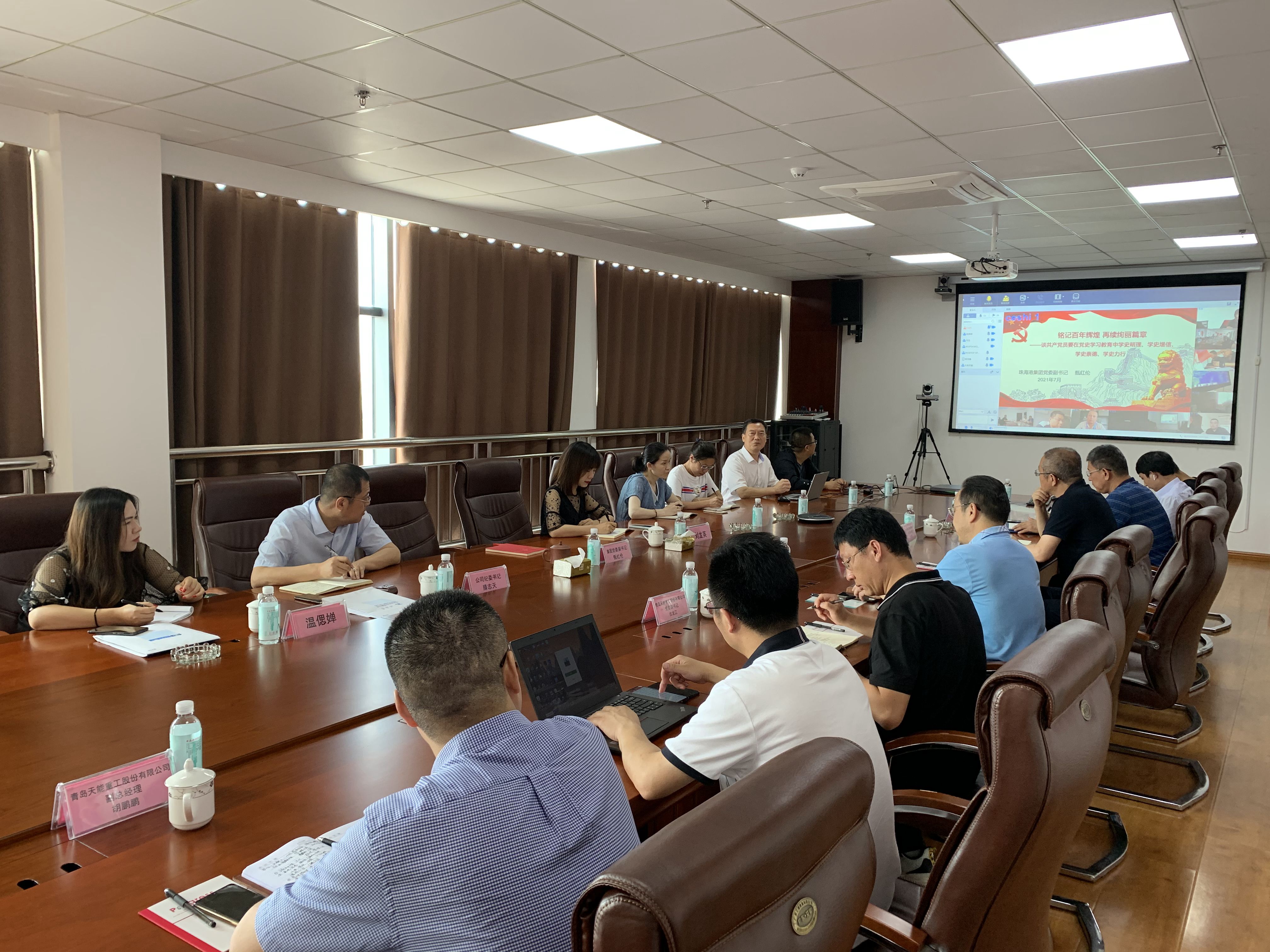 7月9日,珠海港集团党委副书记、工会主席甄红伦带队到天能重工调研并讲授党史专题党课,集团党群工作部总经理滕志天等领导陪同参会。天能重工党委书记、总经理郑旭,全部高管团队,全国各支部党员及入党积极分子以现场或视频形式参加党课学习。